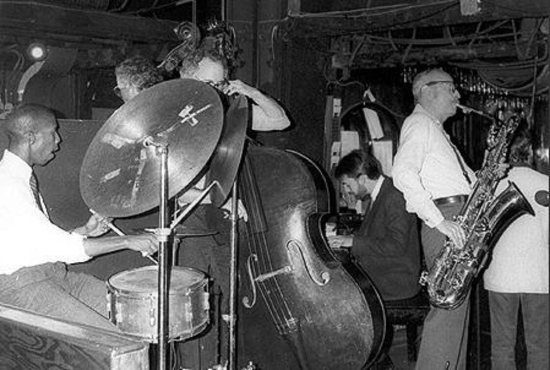 Left to right: Kenny Washington, Dennis Irwin, Michael Weiss, and Pepper Adams, Angry Squire, New York City, 1985.