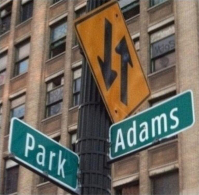 An intersection in downtown Detroit.